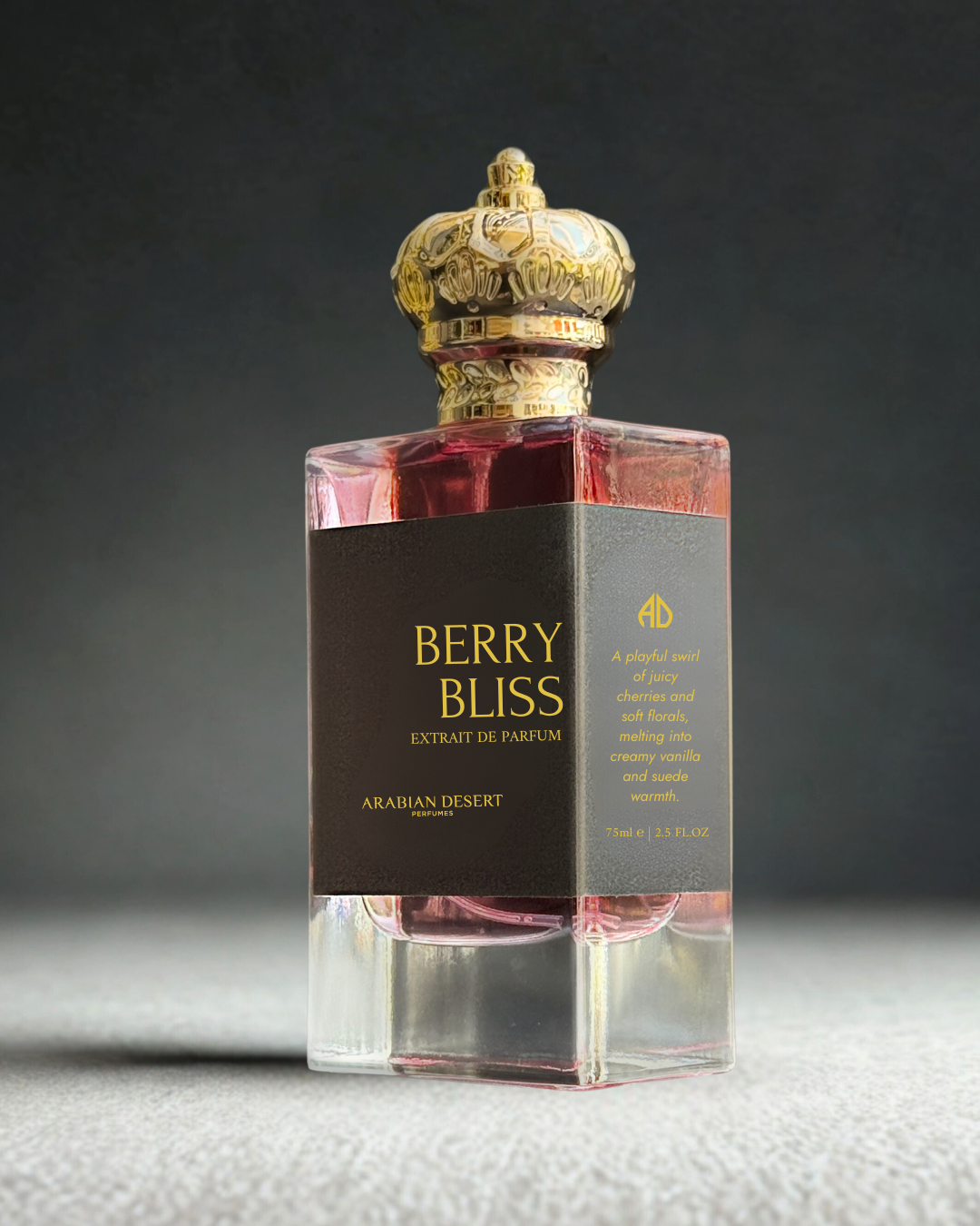 Berry Bliss is a bold yet elegant extrait de parfum that captures the irresistible charm of fruity florals with a creamy twist. Designed as a unisex fragrance, it opens with a juicy splash of sour cherry, raspberry, and mandarin orange, layered with the intriguing sweetness of daim, a gourmand nuance that immediately draws you in.
